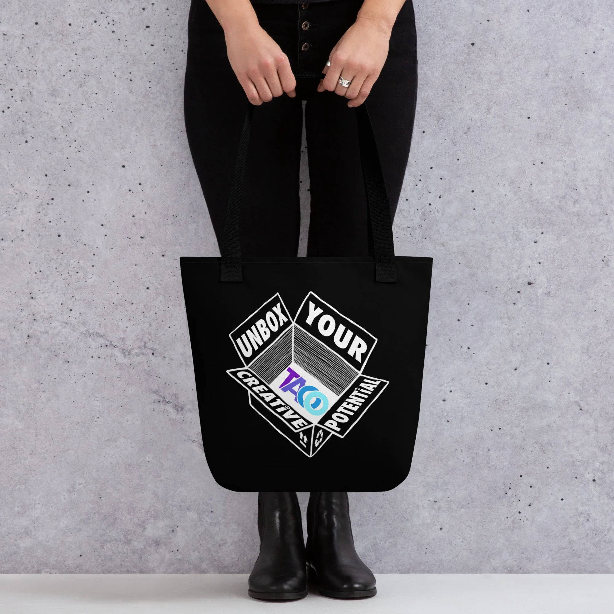 THE CART OF ORiGiNALiTY › Unbox Your Creative Potential Black Tote bag Image 1 of 2 Image 2 of 2 Unbox Your Creative Potential Black Tote bag £21.50 A spacious and trendy tote bag to help you carry around everything that matters. • 100% polyester • Bag size: 15″ × 15″ (39 × 39 cm) • Capacity: 2.6 US gal (10 l) • Maximum weight limit: 44lbs (20 kg) • Dual handles made from 100% natural cotton bull denim • Handle length: 26″ (67 cm), width 1″ (2.5 cm) • The handles can slightly differ depending on the fulfillment location ADD TO CART Added! A spacious and trendy tote bag to help you carry around everything that matters. • 100% polyester • Bag size: 15″ × 15″ (39 × 39 cm) • Capacity: 2.6 US gal (10 l) • Maximum weight limit: 44lbs (20 kg) • Dual handles made from 100% natural cotton bull denim • Handle length: 26″ (67 cm), width 1″ (2.5 cm) • The handles can slightly differ depending on the fulfillment location